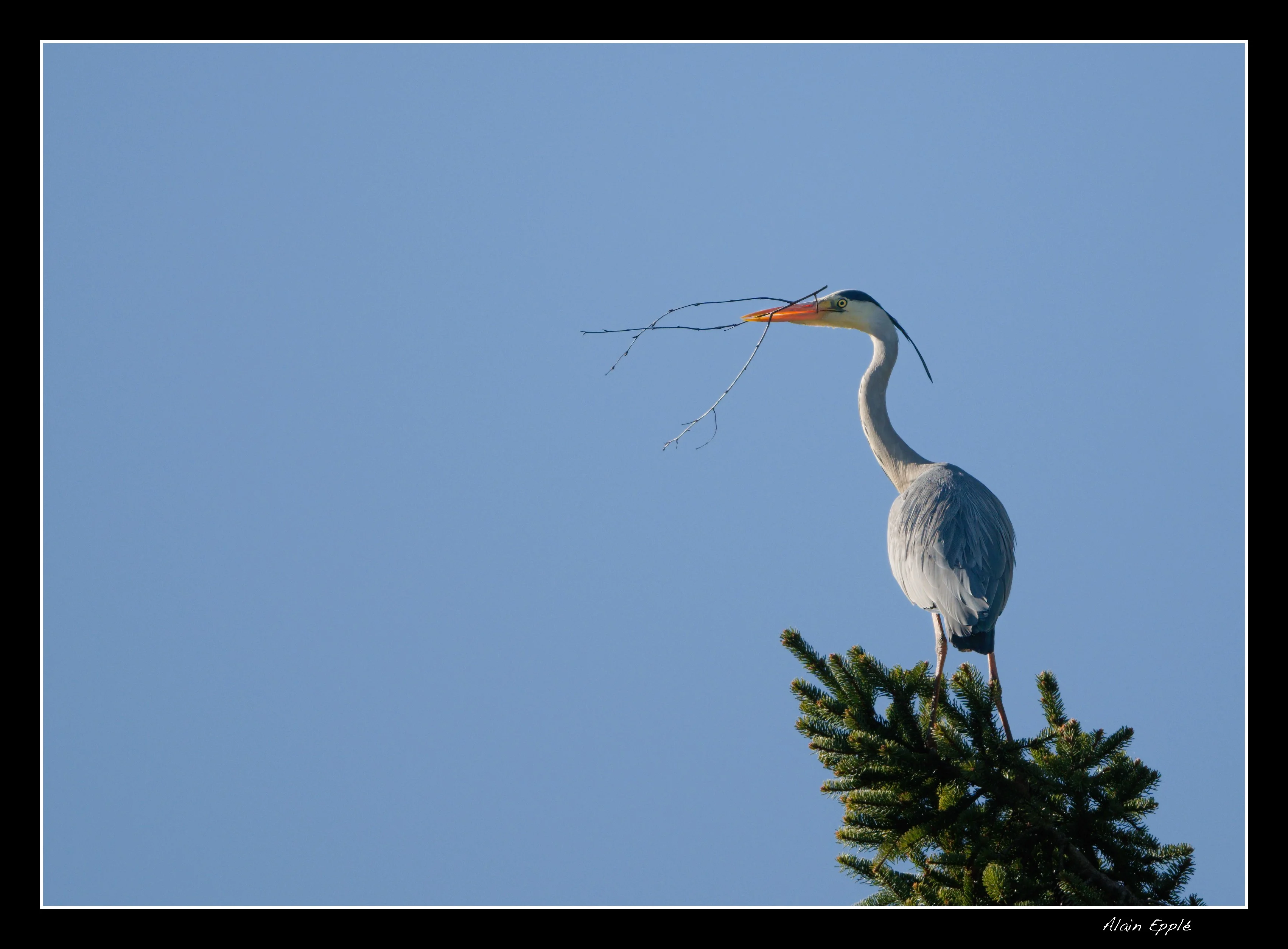 Héron préparant le nid